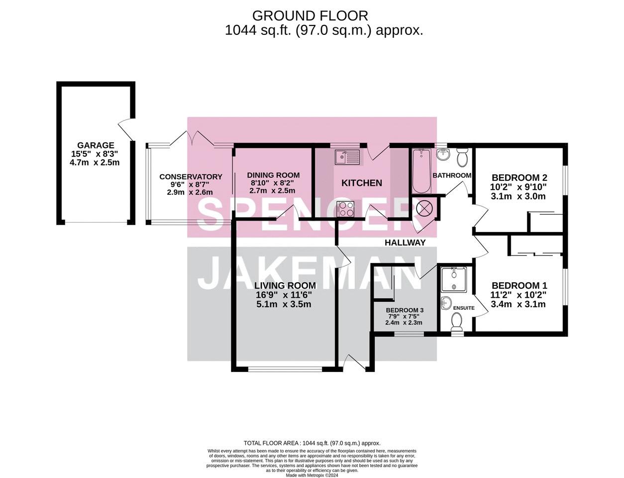 Please note that our room sizes are quoted in metres to the nearest one tenth of a metre on a wall to wall basis. The imperial equivalent (included in brackets) is only intended as an approximate guide. We have not tested the services, equipment or appliances in this property; also, please note that any fixture, fittings or apparatus not specifically referred to in these details, is not included in the sale, even if they appear in any internal photographs. You are advised to commission appropriate investigations and ensure your solicitor verifies what is included in the sale, before entering a legal commitment to purchase. While we try to make our sales details accurate and reliable, Spencer & Jakeman does not give, nor does any Officer or employee have authority to give, any warranty as to the accuracy of any statement, written, verbal or visual. You should not rely on any information contained in these details when deciding whether to view or purchase.